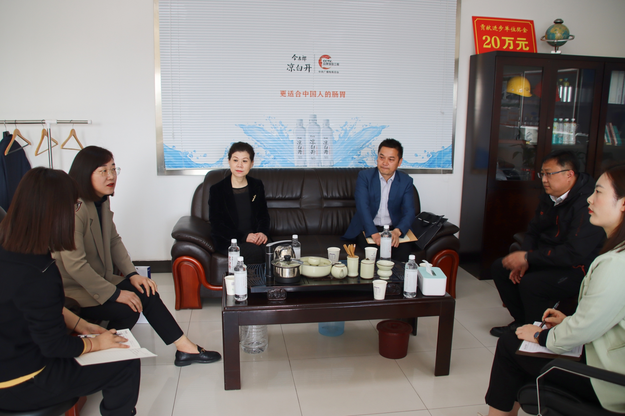 今麦郎(咸宁)有限公司总经理段肖华热情地接待了走访专班,并就今后如何加强供水服务展开友好会谈。会谈过程中,联合水务咸宁区域总经理陶瑛详细了解了今麦郎饮品(咸宁)有限公司的生产经营状况和用水需求等情况,客户服务副总经理郁莉就优化营商环境获得用水便利度等举措进行补充。