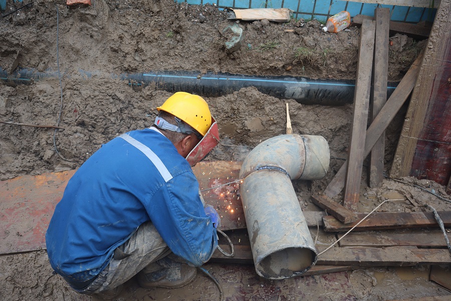 午夜突如其来的大雨严重影响了联合水务荆州公司厂区改造工期的进度,荆州公司生产部全员积极响应总经理郑彬的紧急号召,精准、快速地加入到抢修队伍之中。 生产部到达抢修现场后发现,抢修作业远比想象中复杂、困难。 6月梅雨期降水时大时小,连绵不断,导致厂区面临大量的泥土湿软、雨水积洼等一系列问题,问题有多大,挑战就有多大。 身处这般逆境中,面对如此恶劣天气,生产部全员工团结协作,在生产总监廖智勇科学明智的调度下,完成了管道对接、厂区整改和湿软泥土替换填充等艰巨工作。