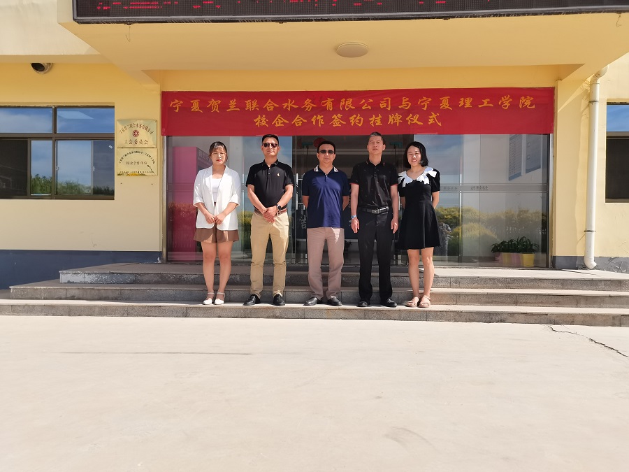 2023年6月,宁夏贺兰联合水务有限公司与宁夏理工学院在贺兰联合水务综合办公楼举行了校企合作签约仪式。出席此次签约仪式的有宁夏贺兰联合水务总经理黄麟、经营副总俞文泽、人事经理常柯、行政经理吴玲,理工学院建筑与环境学院院长刘振华、副院长雷红霞等。