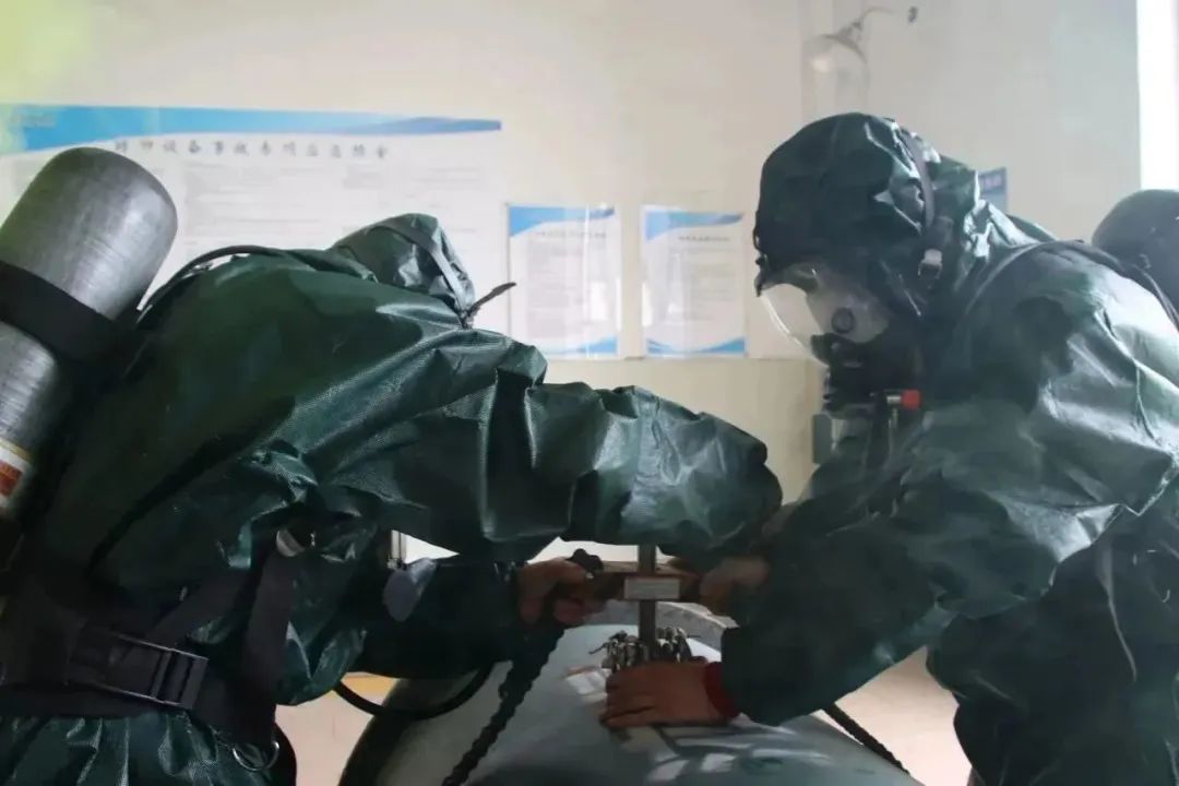 为验证公司安全生产事故应急救援预案的可操作性,提升员工应急处置能力和水平,6月21日下午,安全生产事故应急救援演练在王英水厂进行:氯库的液氯钢瓶瓶身因沙眼腐蚀发生穿孔(角阀故障)泄漏,氯气扩散触发漏氯报警器报警(启动报警实验),值班人员听到漏氯报警声响起,立即佩戴导管式防毒面具,打开库房进入库房观察情况,用10%氨水确认泄露后,立刻向部门经理报告氯库发生泄漏事故,部门经理当即启动《安全生产事故应急预案》,通知各事故应急处置小组到达指定位置,对泄漏氯瓶进行堵漏处理,直至事故处理完毕,警报解除。 聚焦隐患,“降”风险