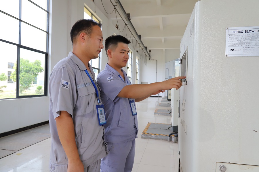 入夏后,机电部加强了日常巡视力度,发现设备问题及时维修,利用专用仪表对设备控制柜内水泵保护器、接触器、继电器及空开进行定期检测,防止开关出现接触不良及漏电现象。发现故障、磨损或老化等异常问题,根据现场实际,及时启动备用或报修,跟踪维修维护进度和质量,确保设备设施可用、可调、可控,确保厂区核心设备在高温天气中平稳运行。为了及时发现设备故障,运行班组工作人员每天都要巡检数次,每趟巡检的时间都在45分钟以上。同时密切监视设备运行情况,发现异常及时处理,准确消除设备故障,确保将设备隐患消灭在萌芽状态。虽然天气炎热,但他们依然坚守在一线,只为确保高温天气下的设备正常运行,出水能达标排放。