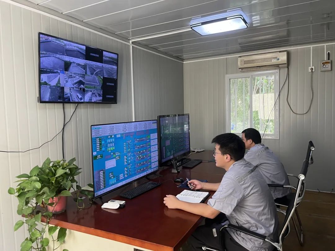 入夏后,机电部加强了日常巡视力度,发现设备问题及时维修,利用专用仪表对设备控制柜内水泵保护器、接触器、继电器及空开进行定期检测,防止开关出现接触不良及漏电现象。发现故障、磨损或老化等异常问题,根据现场实际,及时启动备用或报修,跟踪维修维护进度和质量,确保设备设施可用、可调、可控,确保厂区核心设备在高温天气中平稳运行。为了及时发现设备故障,运行班组工作人员每天都要巡检数次,每趟巡检的时间都在45分钟以上。同时密切监视设备运行情况,发现异常及时处理,准确消除设备故障,确保将设备隐患消灭在萌芽状态。虽然天气炎热,但他们依然坚守在一线,只为确保高温天气下的设备正常运行,出水能达标排放。