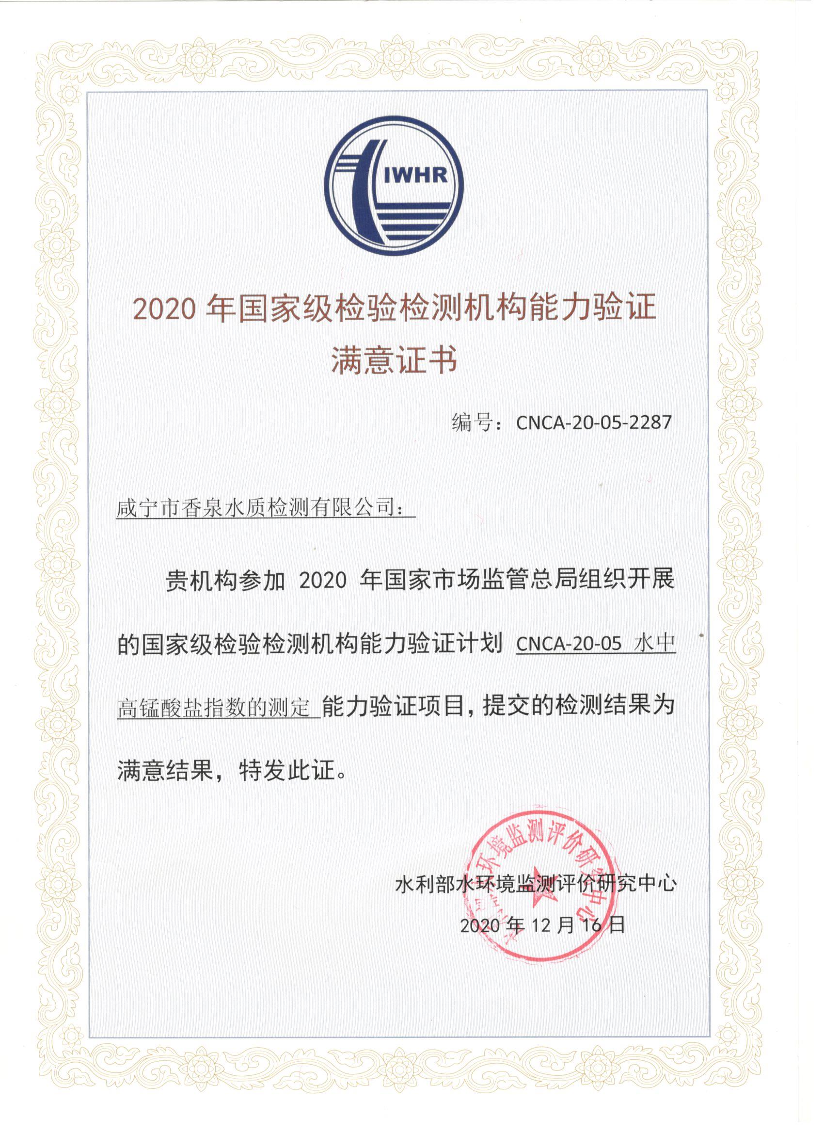 咸宁市香泉水质检测有限公司为江苏联合水务科技股份有限公司(股票代码:603291.SH)的全资子公司,成立于2018年6月,公司于2019年1月通过省级检验检测机构CMA资质认定,同年被湖北省住建厅审核确认为湖北省城市供水水质监测网咸宁监测站,现具有生活饮用水、地表水及水处理剂等三类产品106个项目的检测资质,检测能力处于湖北省同行业较为先进水平,是咸宁市生活饮用水检测领域资质最全的专业检测机构之一。据统计,联合水务香泉水检公司自成立以来,先后参加国家级或省级质控考核和能力验证8项次,结果合格(满意)率达到100%。