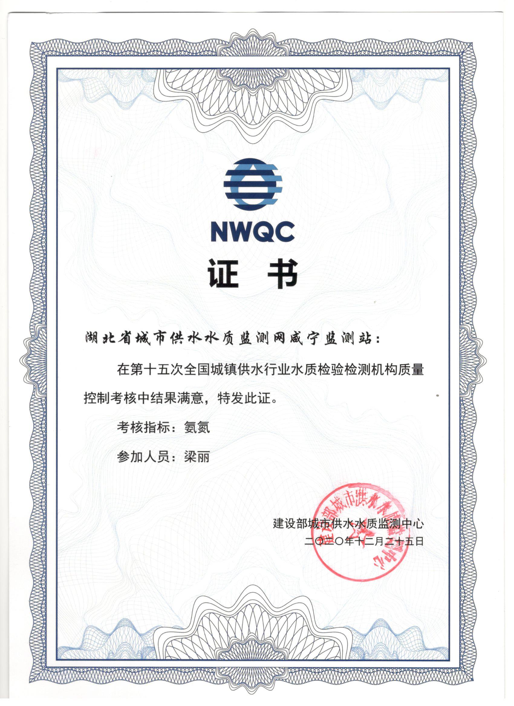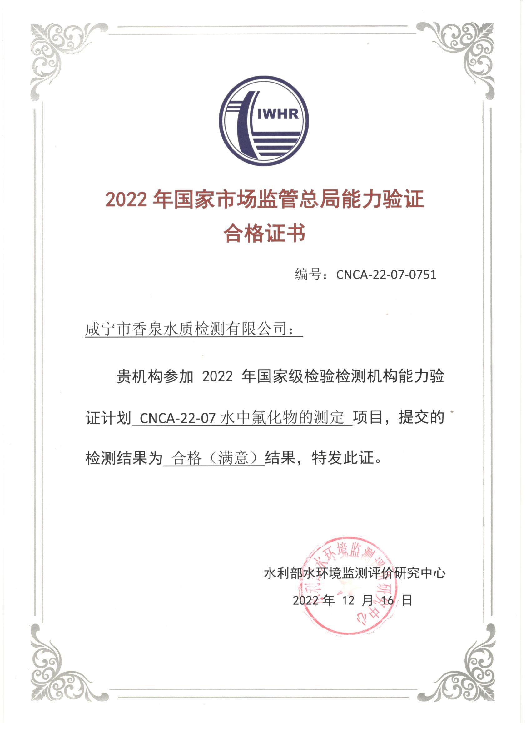近日,联合水务咸宁市香泉水质检测有限公司暨湖北省城市供水水质监测网咸宁监测站传来佳绩,其参与的国家住建部城市供水水质监测中心于2022年11月组织开展的《第16次全国城镇供排水行业检验检测机构质量控制考核》活动,全部取得“合格”结果。