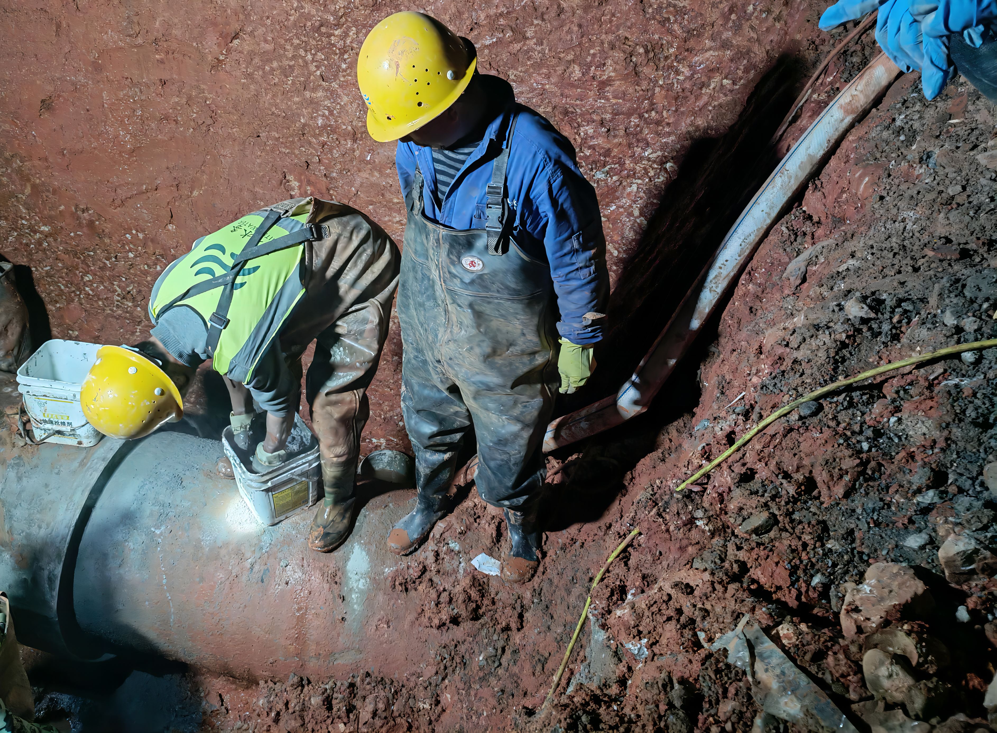 竭尽全力保供水,用心服务为民生。夜幕降临,正当人们准备进入梦乡时,黑夜中却多了一群奔波在施工现场的“夜行者”——他们是联合水务管网维修员。管网部按照既定方案,晚上八点开始停水作业,针对漏水管道处车流量大、存在较大安全隐患、涉及用户较多等因素,管网部上下一心,克服连续抢修的疲惫,一刻不停的进行挖掘和抢修作业,经过8小时连续奋战,最终于12月7日凌晨4点更换了DN600管道,圆满完成抢修任务,保证了周边居民的正常用水。