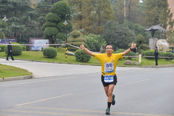 (图3:微型马拉松队员合影) 集团副总裁刘猛先生带领集团46名微型马拉松队员,甩开膀子、大步向前冲刺,赛道上大家不甘落后,互相鼓励,以坚韧不拔、永不言弃的精神,超越自我极限,跑向终点,咸宁联合水务罗志祥获得了联合水务微马参赛人员第一名。 集团副总裁陈樵、James Beeson先生带领17名全程、半程马拉松队员经过1至3个多小时的激烈角逐,全部抵达终点。集团人事行政总监杨丽霞是唯一跑全马的女性,她以超人的毅力,锲而不舍的精神跑完全程。新绛县晋华生态环境工程有限公司总经理夏学春和瑞昌市金达莱环保有限公司梅琳分别获得联合水务参赛人员半程和全程马拉松第一名。集团领导分别为微型、半程和全程马拉松获奖运动员颁发了奖金。